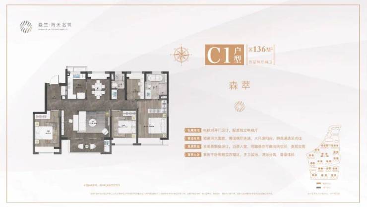 餐厨空间独立,厨房U型设计,操作灵活。双卫明窗,全卧带飘窗,三卧朝南,采光良好。主卧套房设计,步入式衣帽间,尽享生活的尊贵感。🥝森兰海天名筑售楼处24小时电话☎☎:400-8787-740【售楼处已认证】