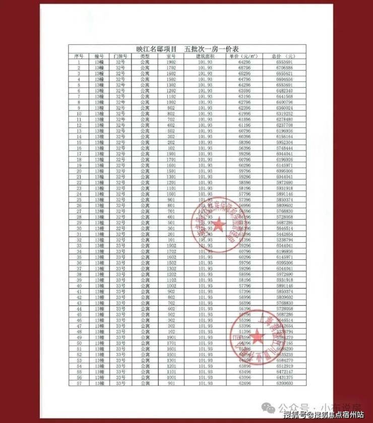 一房一价表▼