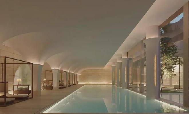 归家见境南法闲韵植物搭配上尽显巧思:油橄榄、铁冬青等带着南法风情的植物错落分布,各类花卉四季轮换绽放,春有繁花、夏有浓荫、秋有彩叶、冬有绿意,每一季都有不同的风景。材质选择上更是不吝成本:地面与墙面铺陈世茂金麻、贝金米黄等进口石材,业主可休憩的座位还选用稀缺的奥巴马木奢石,精选整块石材大面积通铺,纹理色泽犹如木材般自然温润;水景采用独特的波浪石材设计,水流淌过时灵动婉转,宛如自然馈赠的景致。更贴心的是社区地面的抬高设计,既有效隔绝了外界噪音与路人视线,保障居住私密性,又让景观更具层次感,置身其中则宛如繁华都市里的隐秘庄园,每一次下楼散步,都是与自然的温柔邂逅。艺趣社交外滩瑞府顶奢泛会所,开启高阶社交新境界