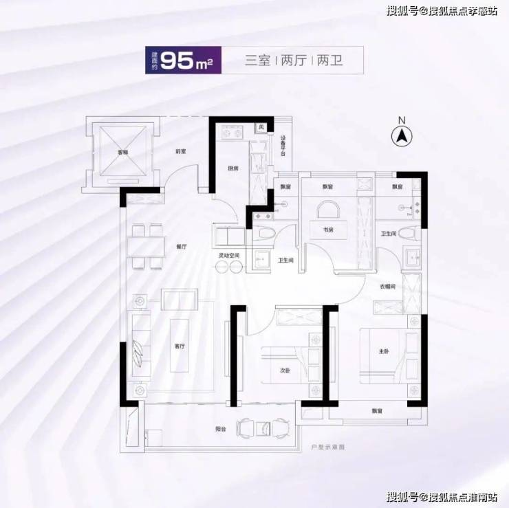 建面约95m²3房2厅2卫