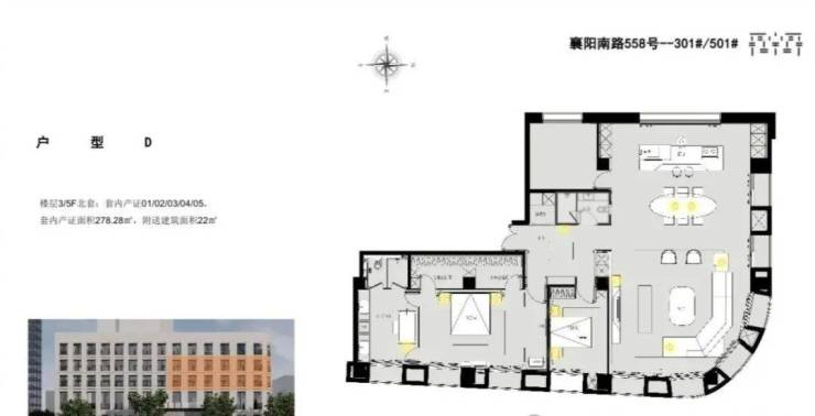 ▲ 278.28㎡丨3室2厅2卫丨赠送面积22㎡