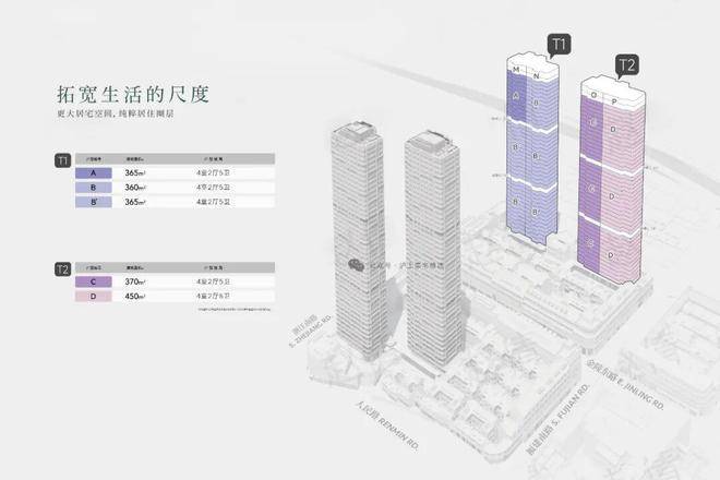 户型方面,金陵华庭二期配置了建面约360-875m²的外滩天际大宅。