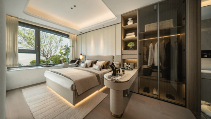 不同于市面上门是门,框是框,墙是墙,看房时“五颜六色”。江湾金茂府室内采用一体化设计语言,实现空间、色彩与材质的协调统一。
