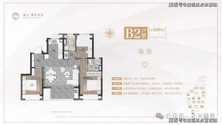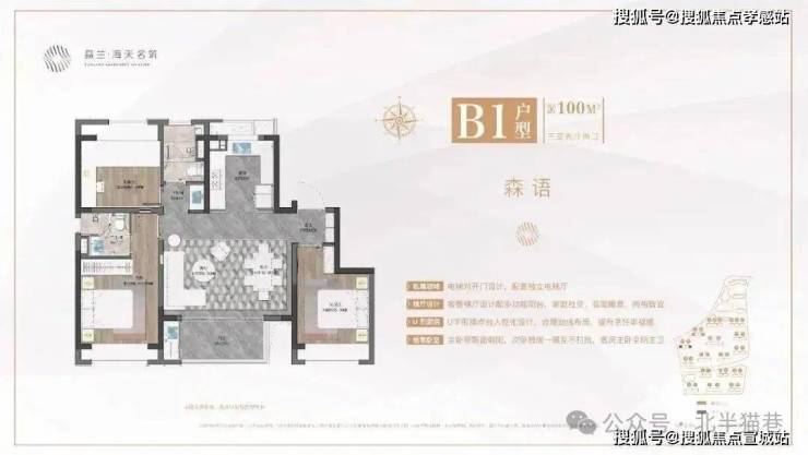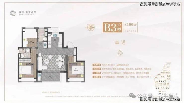 1、「森兰海天名筑」售楼处电话✆:400-8855-420✆建面约100㎡三房两厅两卫,市场主流户型。客餐横厅设计配多功能阳台,优势在于更大采光面和更好通风效果,把过道纳入到客厅和餐厅的空间中来,使整体空间得到更好的利用。