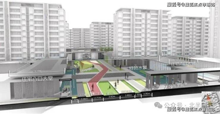 一条连续的公共通廊由海天湖公园引入社区,贯穿三大功能结构区。