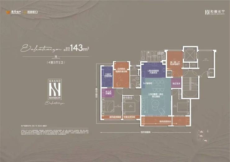 建面约143平4房2卫户型☮🔥和樾长宁售楼处电话:400-8787-740👈🔥