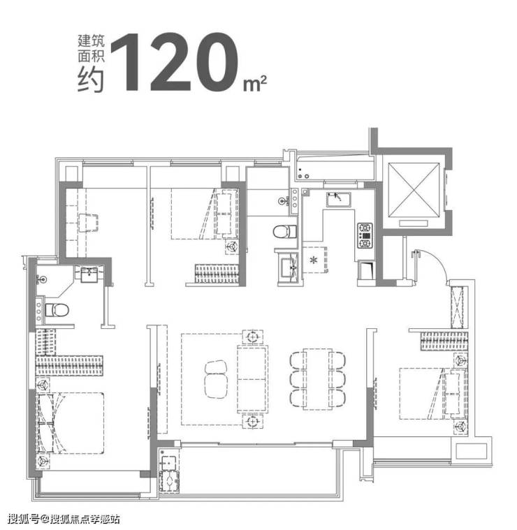 另外,3房2卫5飘窗的设计,保证了主人的私密空间,也保证了室内的收纳空间。