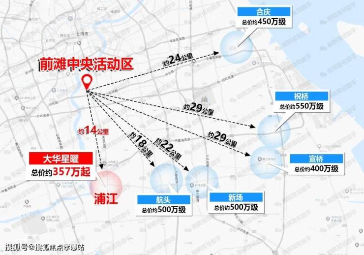 大华星曜所在的浦江,与前滩、张江、周康等浦东各大产业高地之间的绝对距离非常近!