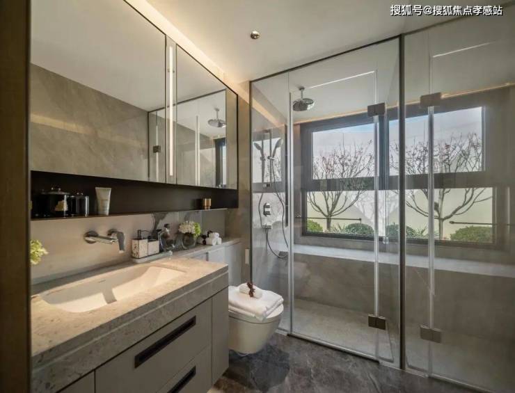 「江湾金茂府」售楼处电话:400-885-5420✨✨卫生间的部分严选杜拉维特的台盆、壁挂智能马桶、高仪的龙头、淋浴花洒等一系列高端品牌;主卧的卫生间更是配备了美妆冰箱、魔镜等配置,相信没有哪个女生能够拒绝。