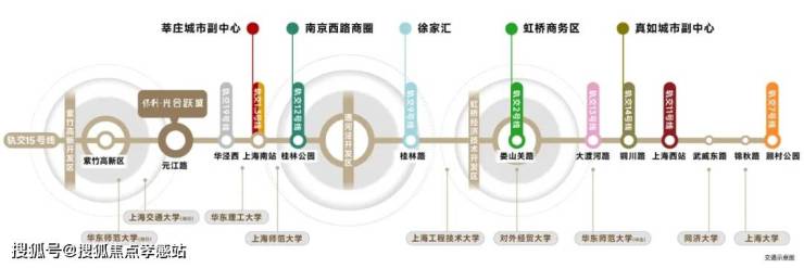 15号线单线可谓黄金科创产业线,自北向南串联3大科创园区、9所高校。不论是紫竹国家级高新区、大零号湾科创区、漕河泾开发区这样的产业集聚地,还是如交通大学、同济大学、华东师范大学、华东理工大学这样的知名学府,都在其日常的出行半径。