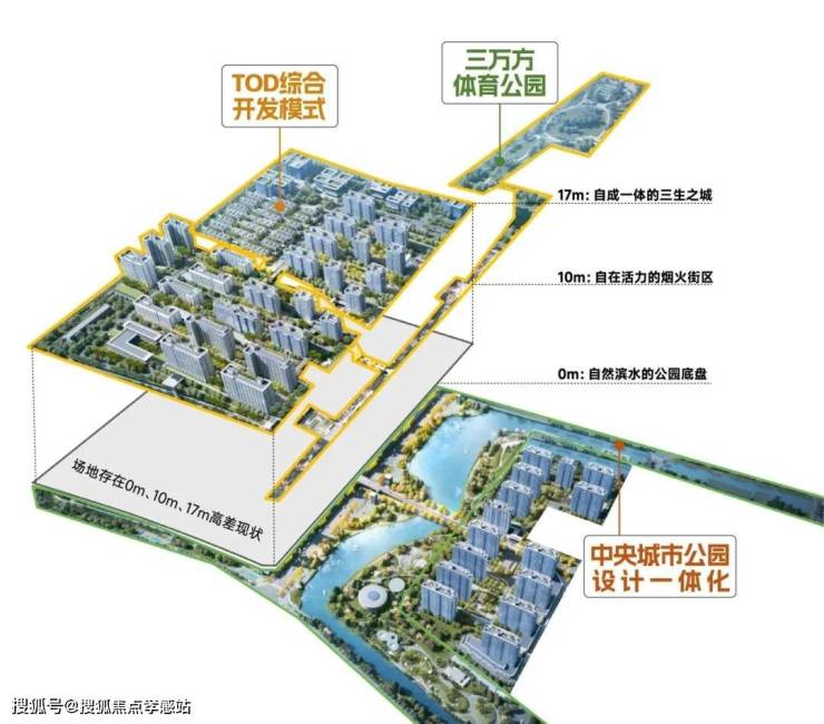 5.0模式的TOD 基于生态公园作为底盘打造的立体微缩城市。