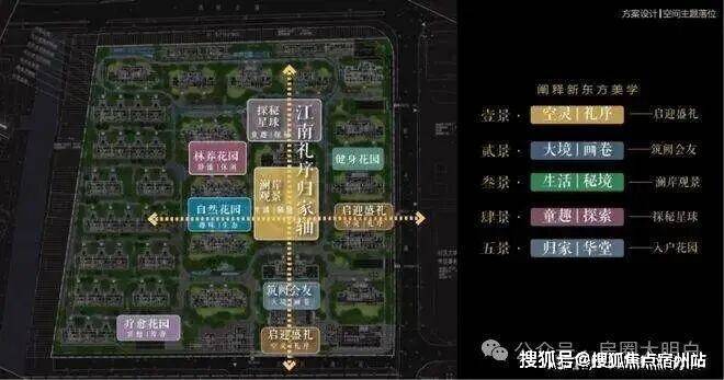 以江南人文精神为源点,打造两轴一环五进空间,江南礼序归家轴串联启迎盛礼、筑阙会友、归家华堂等5重礼制,尊崇归家;健康运动轴以24小时跑道为社区活力生活环,串联儿童乐园、长者康养、疗愈花园等10大生活场景,营造全龄全时的江南诗意生活。