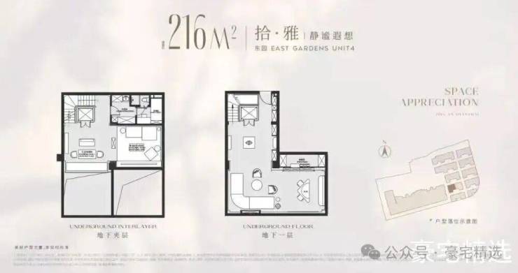 以建面216平户型为例,地面总高3层,地下一层5.5米带夹层,地下室面积就达到120m²,另外有露台、花园等,项目平均附赠也达到了约60%!
