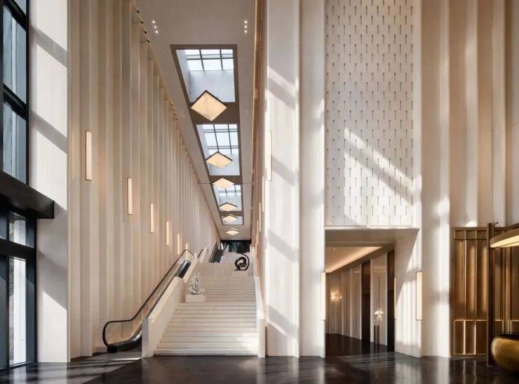会所,从三层挑高大堂与艺术阶梯开始,约14.5米挑空把归家的仪式感拉满;