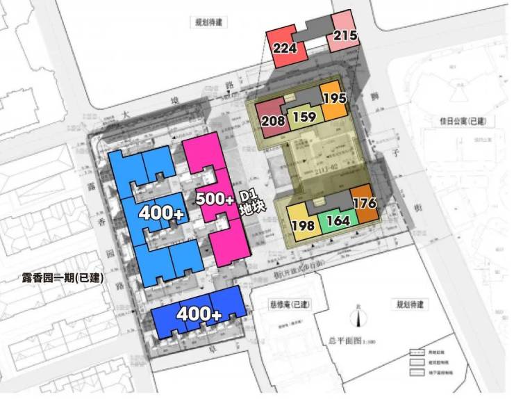 B地块和D1地块规划设计图如下,除了住宅,还会有部分商业。