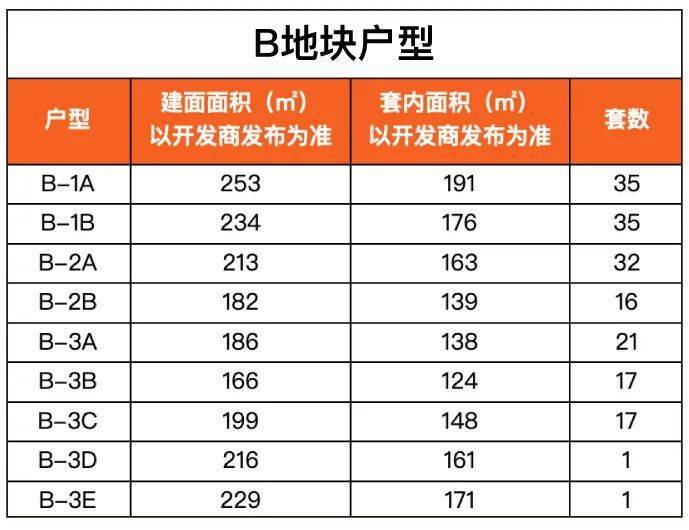 B地块为精装高层,主力户型为建面约166-253㎡3-4房;
