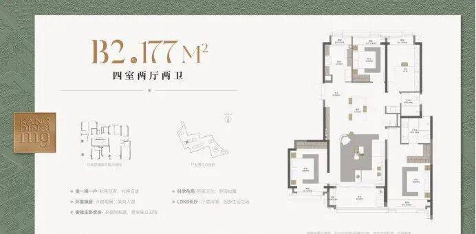 48席177㎡四房:改善家庭首选,独立家政间、奢阔主卧套房,空间尺度极致;