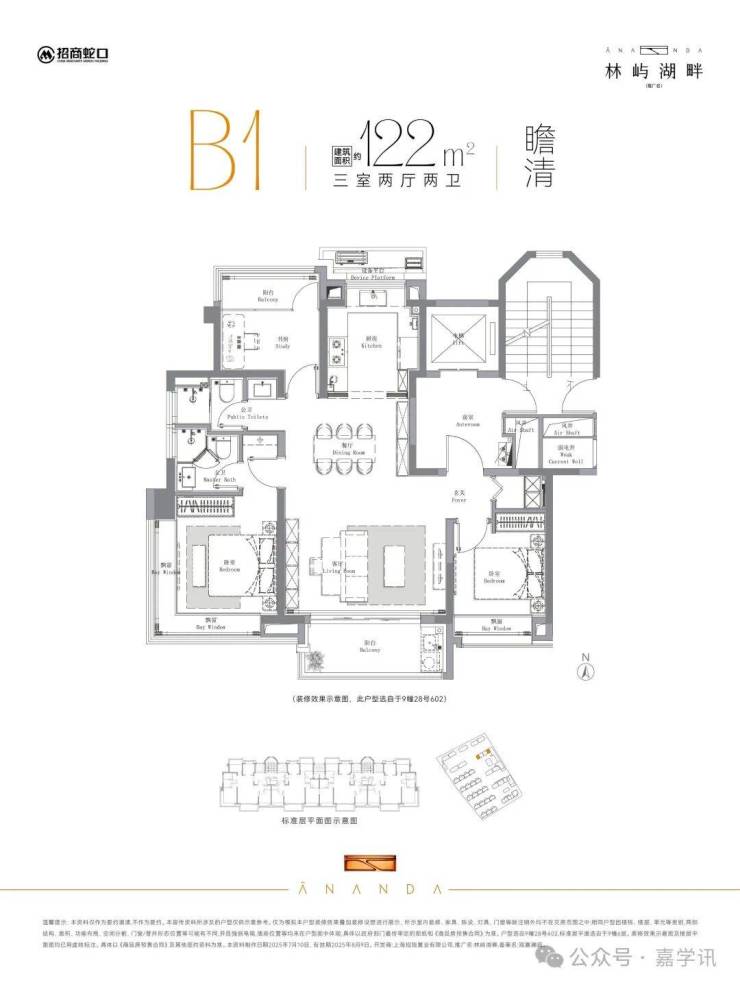 首开面积:户型112-122平3房2厅2卫,叠加:160-165平
