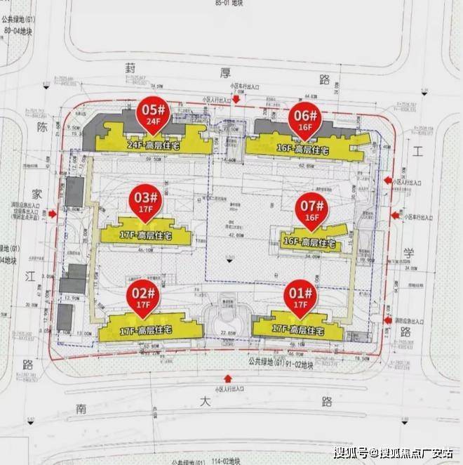 根据设计方案显示,该地块拟建5幢16-17F高层住宅1幢24F高层住宅以及若干社区配套用房,共计规划约436户。