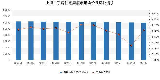 价格方面,市场仍面临下行压力。根据诸葛找房数据研究中心的监测,上周上海二手住宅市场均价为59912元/平方米,环比微降0.3%,延续了近期的调整态势。这一现象表明,尽管成交有所放量,但卖方在议价中仍多以价换量,市场整体处于“以价换量”阶段。