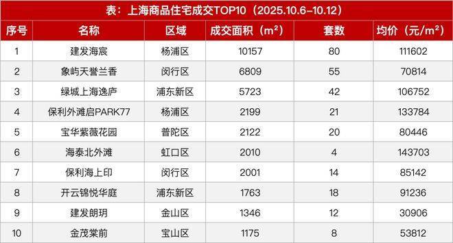 具体到项目层面,杨浦区新江湾板块的建发海宸表现最为突出,上周网签80套,成交面积10157平方米,网签均价达111602元/平方米。该项目于9月30日开盘,推出322套房源,开盘当日去化296套,去化率约92%。