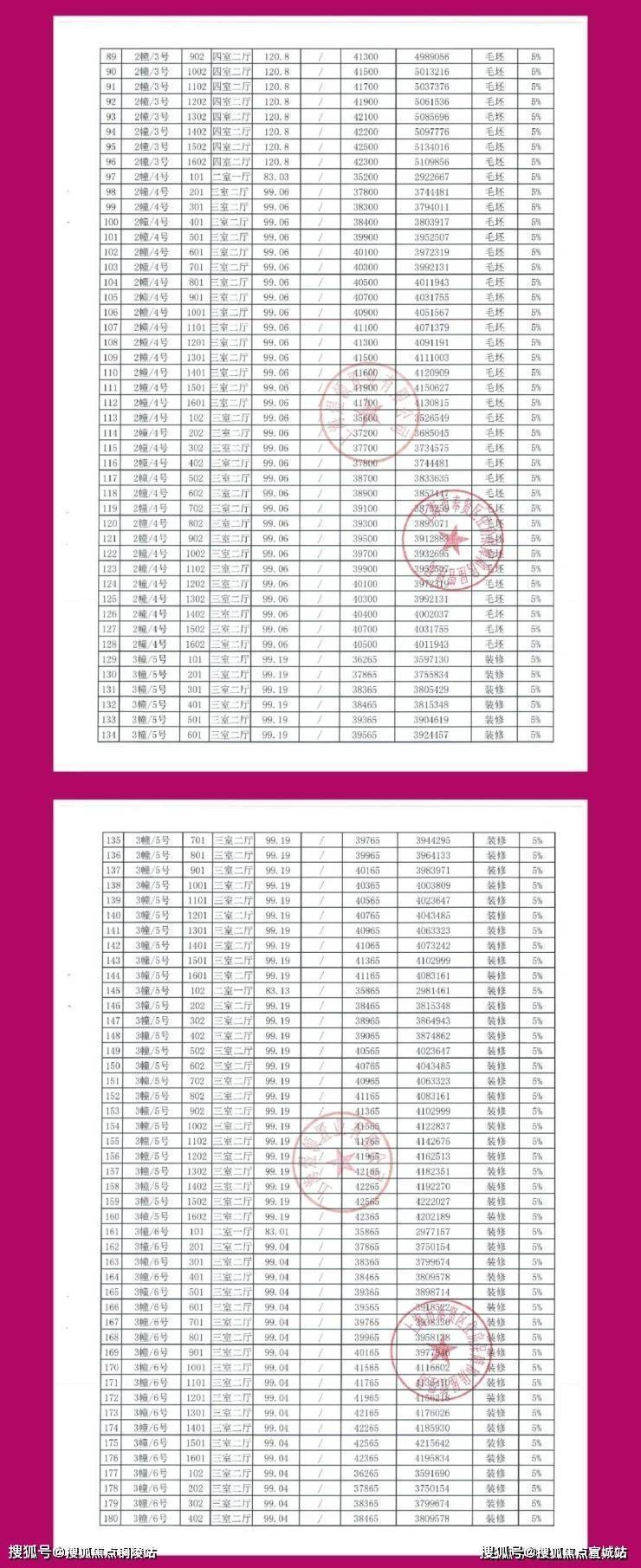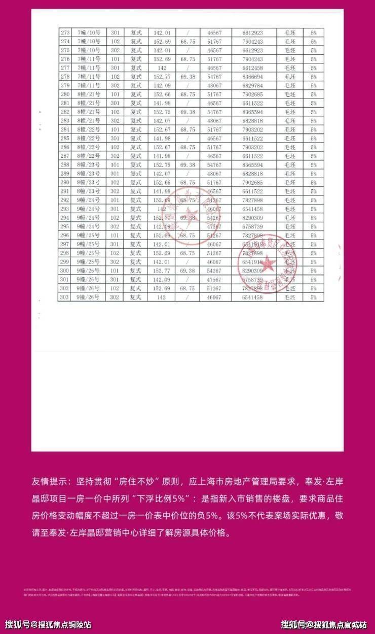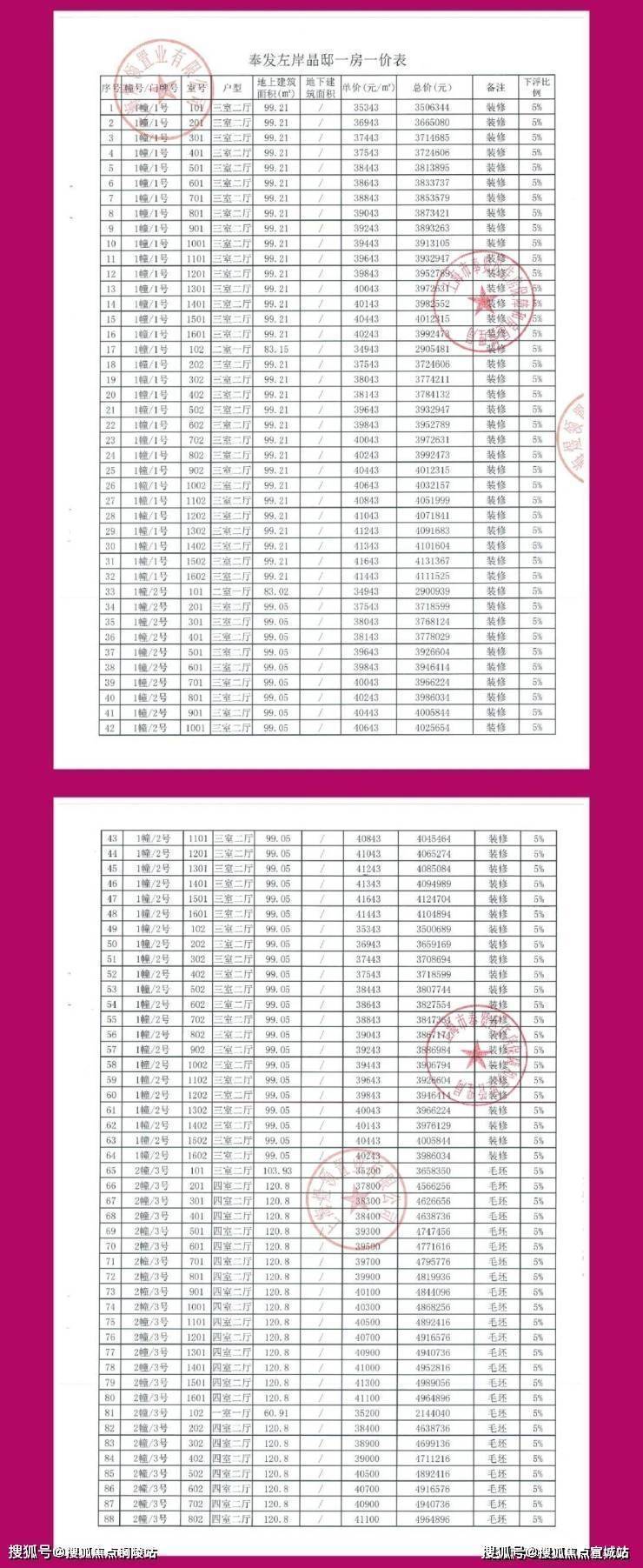 一房一价表发布:
