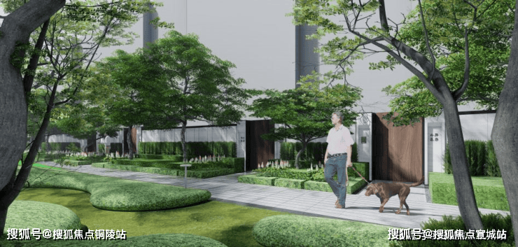 社区内部打造一带两轴三核的精致公园谧境。