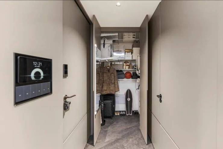 项目的玄关处设置了超强玄关收纳空间“800库”,将近1平方空间尺寸可以放置多个大件生活用品,比如滑雪板、高尔夫球杆等。