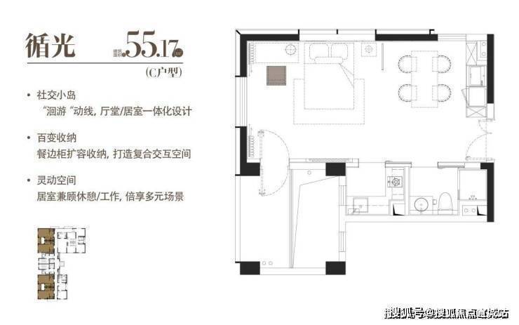 C|循光|建面约55.17m²|一室一厅一厨一卫