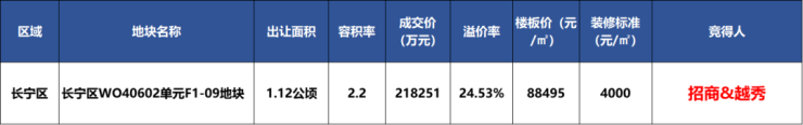 在刚刚过去的2024年第八批次土拍首日,招商&越秀以总价21.82亿元竞得长宁区仙霞社区地块(长宁区W040602单元F1-09地块)。