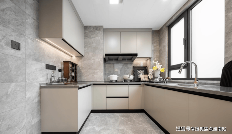 厨房尺度也进行了升级,如此宽敞的U型厨房,三五好友聚会时,即便两个人同时煮饭炒菜也会显得非常从容。