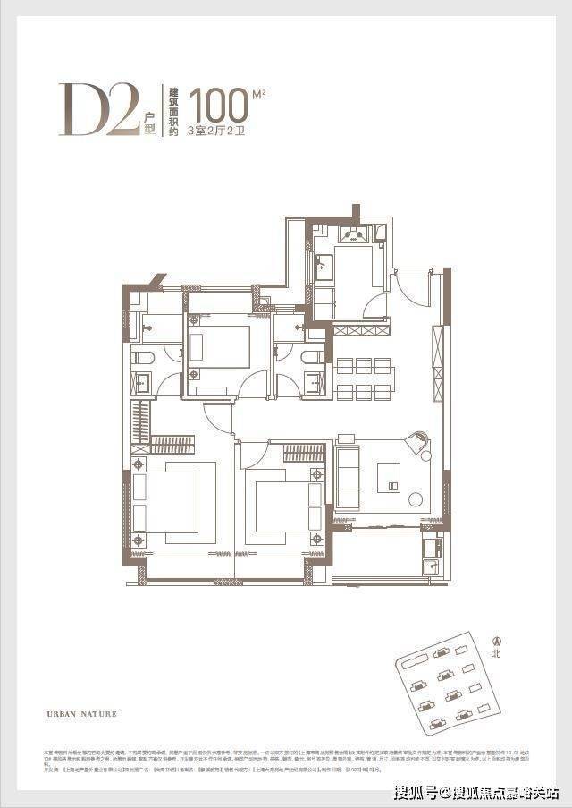 建面约100㎡3房2厅2卫