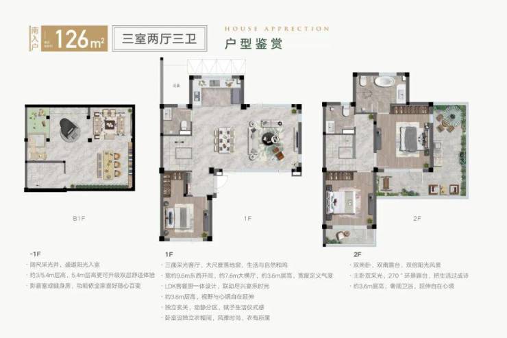 低密设计:0.41容积率,独栋合院布局,每户配备150㎡庭院及地下室、露台等赠送空间,实际使用面积可达239㎡以上。