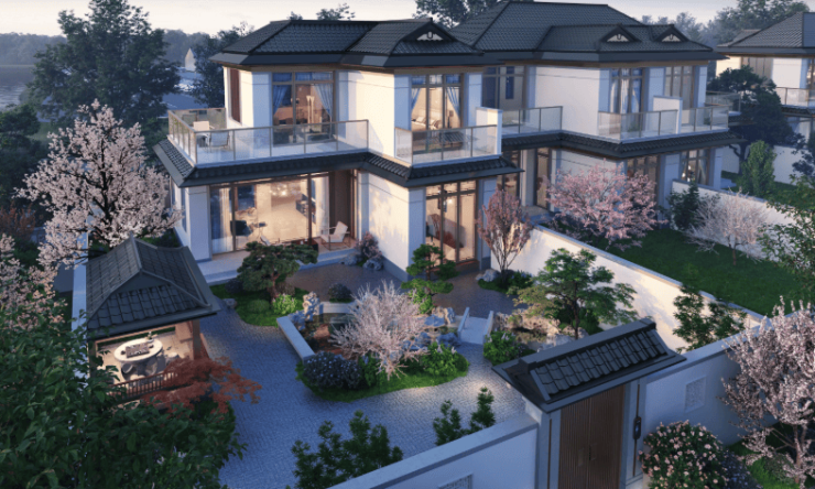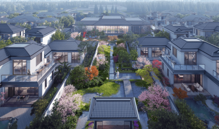 中式美学:灰瓦白墙、雕梁画栋的新中式风格,融合园林景观,营造“曲径通幽”的意境。