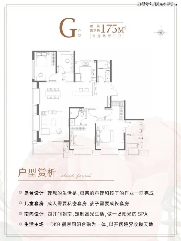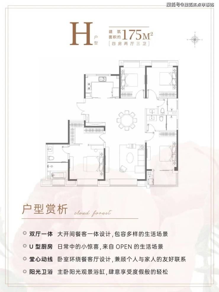 建面约175㎡4房3卫,几乎是上海改善的终点户型。