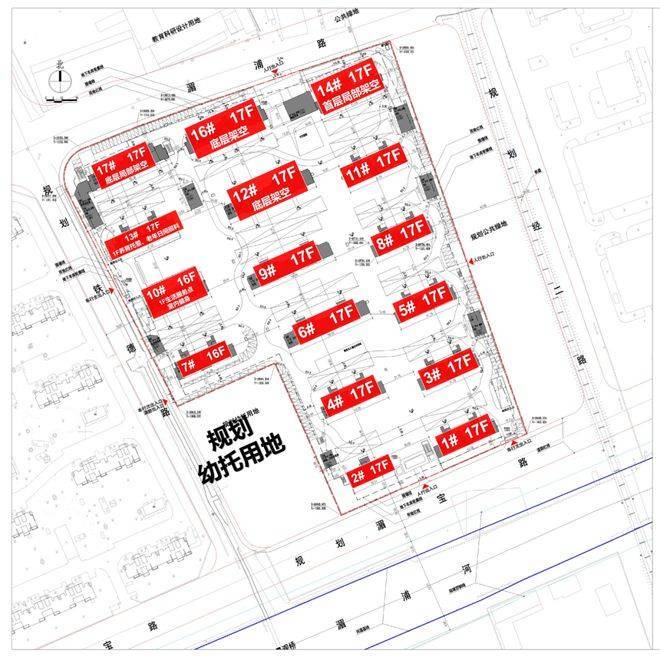 根据设计方案显示,地块拟建16栋16-17层高层住宅,以及社区配套,可售住宅体量超过1100套。