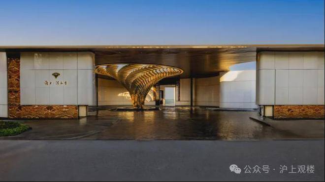 社区含“奢材”量很高。 门庭延街的外立面,以精工定制弧形 米色石材 为主调,镶嵌典藏级 老虎玉大理石 ,点缀 古铜色现代海派艺术感 灯器,整体呈现出百年海派的贵雅气质。