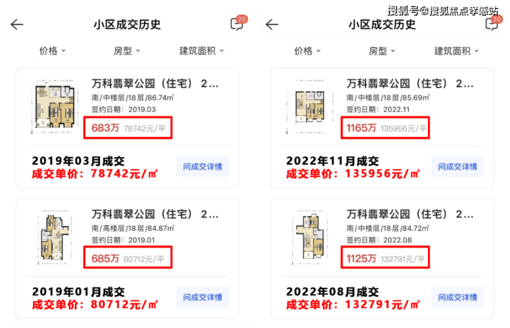 以张江万科翡翠公园为例,2019年二手房成交价为7.87-8.07万/㎡,2022年最新成交价已经涨至13.27-13.59万/㎡!