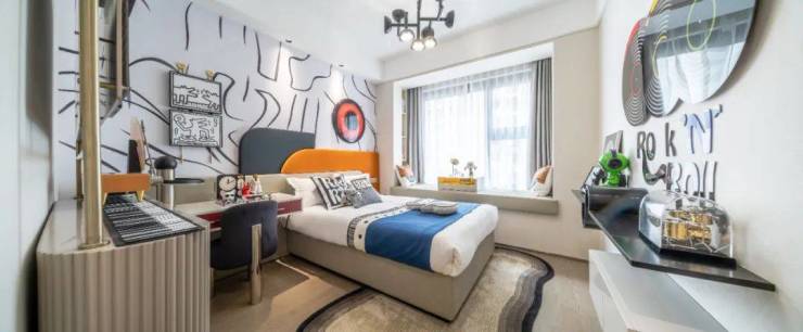 人性化细节也相当出彩。比如,客厅和主卧都标配悬浮吊顶、无主灯设计,背景墙采用皮革和铝合金拼接,也都是实体交付的。