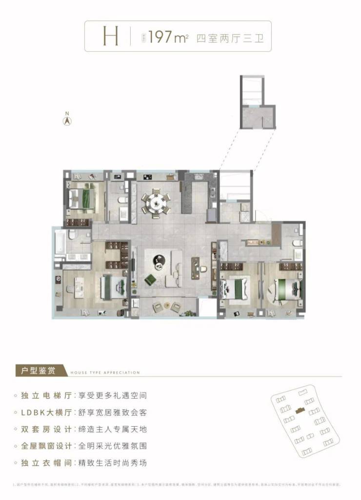 约197㎡户型,更约是做到双套房设计,适配大家庭多样化的生活需求!