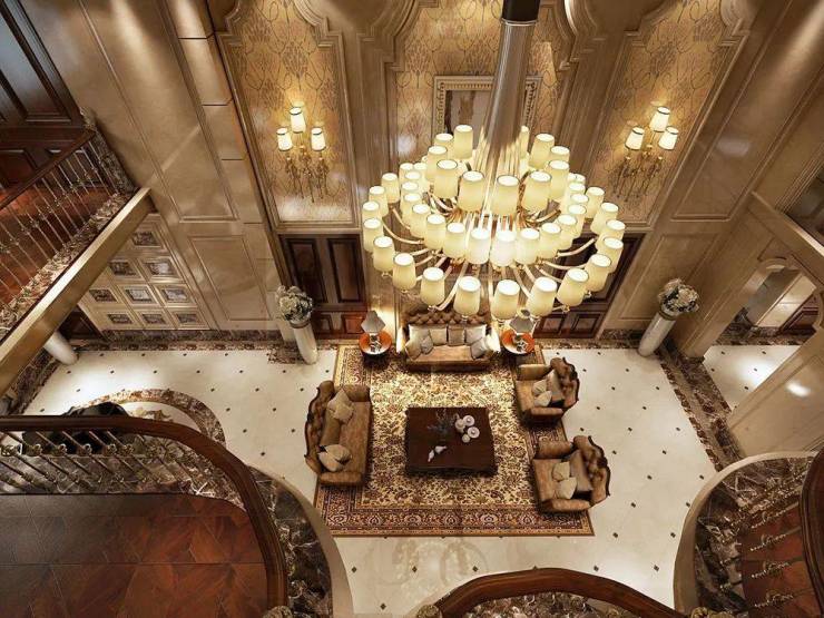 外立面由全天然花岗石材构筑,室内大厅净高19米,气势十分磅礴!厅内10根12米高的古典主义石柱上精细的手工雕刻花纹,总长达2700米,由千人费时一年完成;在大厅南北两端的水晶吊灯,灯管支数更是达到了 5000支! ✨✨上海紫园售楼处热线☎️☎️:400-9966-940✔✔