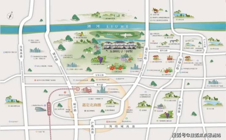 项目位处嘉定北生态涵养区,畅达交通,速抵多商圈。河流环绕,果岭为邻,享高负氧离子环境,马场、少儿营地等丰富户外休闲配套尽在周边。