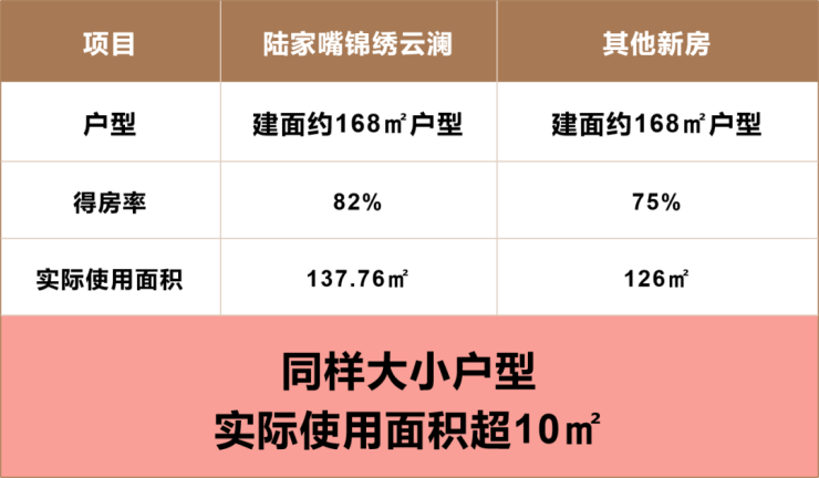 以建面约168㎡为例,例如,同样面积大小的房子实际使用面积可能只有126㎡,而项目的168㎡户型实际使用面积超过137㎡,不仅居住体验更佳,性价比亦是大幅提升。