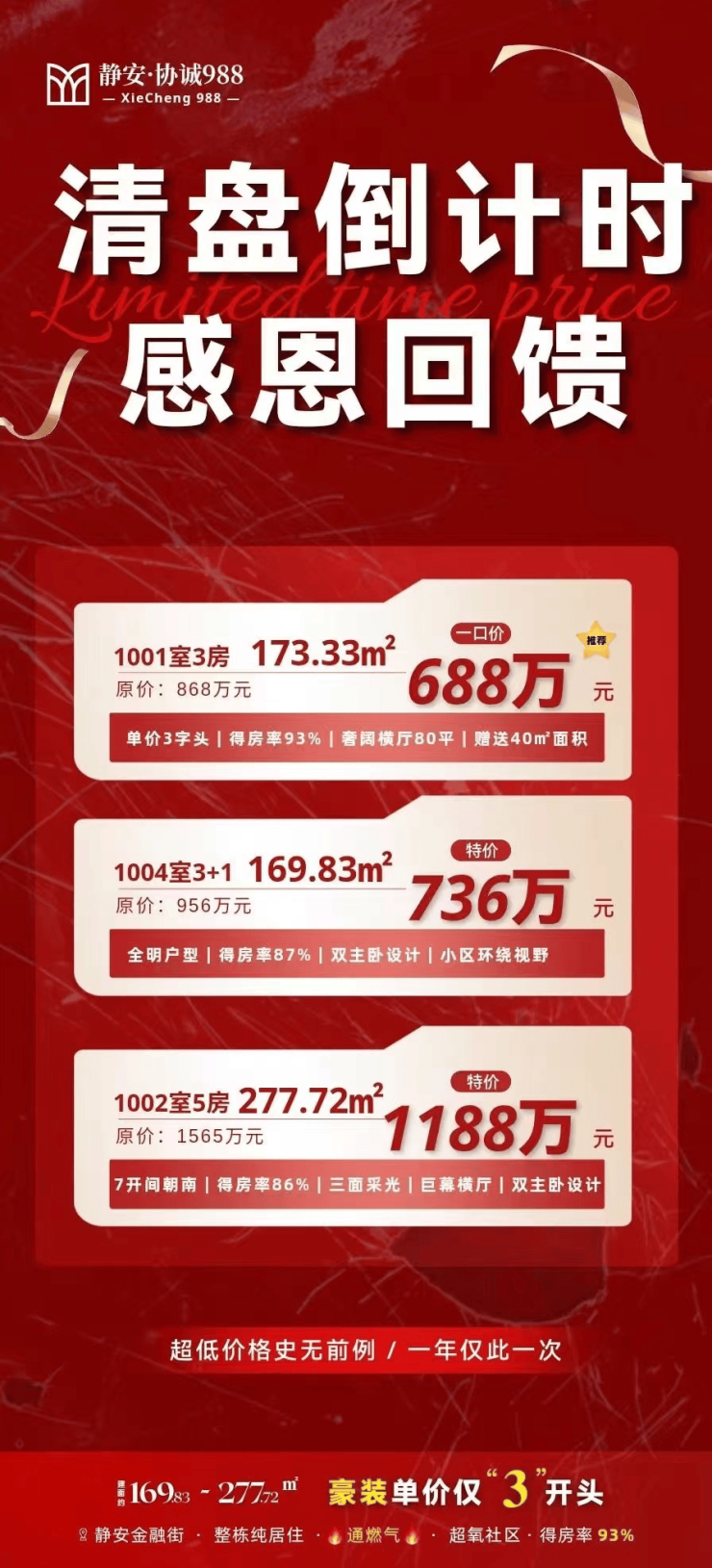 协诚988 173-277平,推出特价房!单价仅3.9万!