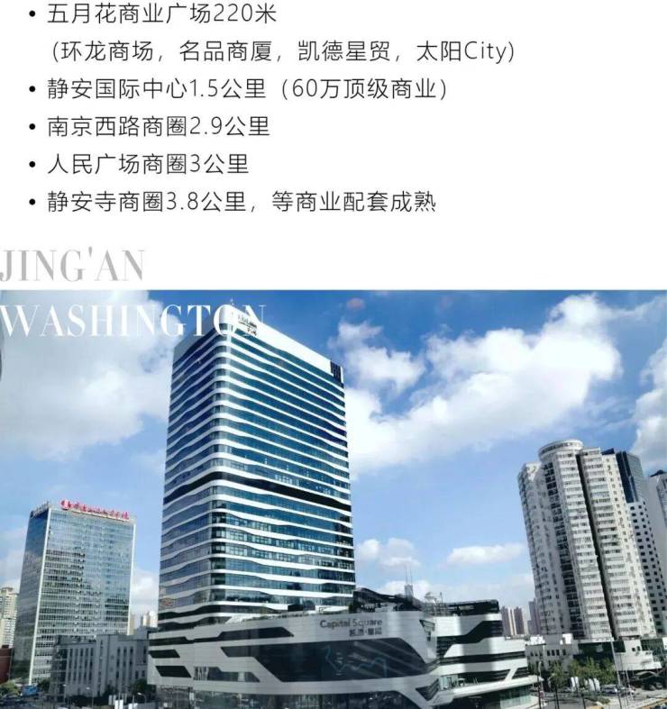 商业配套:五月花商业广场220米(环龙商场,名品商厦,凯德星贸,太阳City) 静安国际中心1.5公里,南京西路商圈2.9公里,人民广场商圈3公里