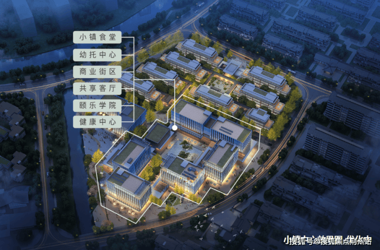灵感源于上海老街区永平里和杭州天目里,广场和连廊空间串联多彩生活,约1.8万方小镇中心,包含有约5600方生活配套,设有小镇食堂、幼托中心、商业街区、共享客厅、颐乐学院、健康中心等。