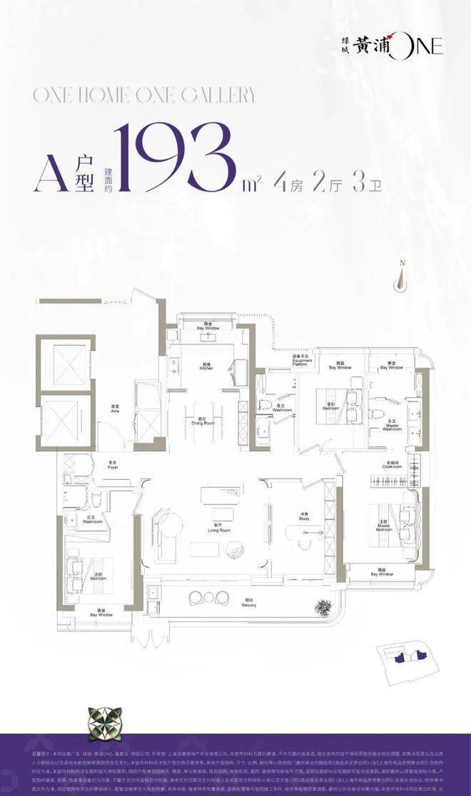 ·建面约193m²户型,主力总价3400万左右