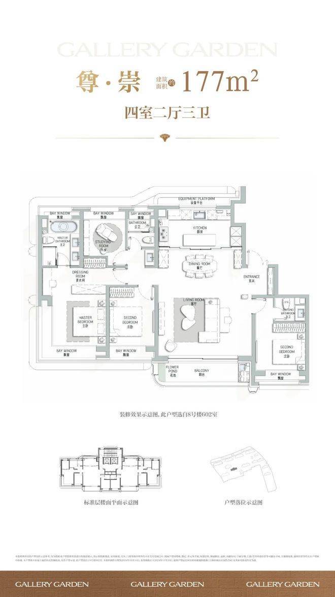 建面约177㎡户型是本批次的重点户型,总价约2300-2500万级,改善一步到位,后续再无!阔朗的四开间朝南设计+双套房设计,保证不同家庭成员起居的私密性。