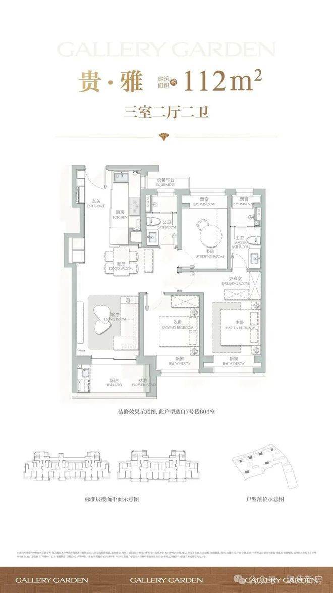 项目舍弃了传统逼仄的百平三房,将最小面积提升到了建面约112㎡,而这12个平方的提升,让整体户型的空间尺度感达到了新的高度。