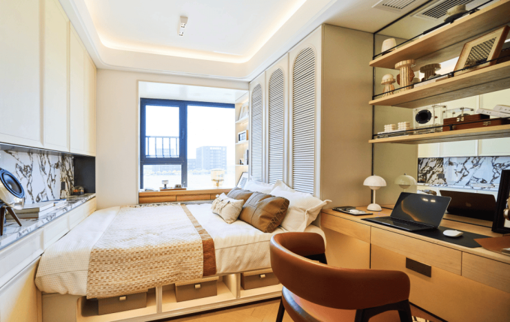 建面约77㎡2 房户型,是目前少有的能以超低总价上车的户型。单套总价或许不到两百万起,装修交付。在设计紧凑动线的同时,也做到了大阳台、主卧飘窗的配置,儿童房的空间感受体验感也不错。